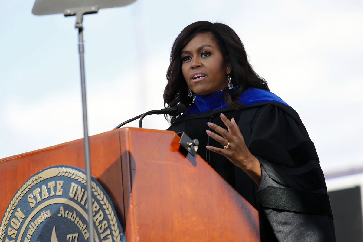 Obama told degree recipients that JSU has prepared them for preventing Mississippi from taking steps backward because “your generation, more than any generation in our history, truly has the tools and opportunities you need to seize this moment. The question is: Are you ready to step up and use your power and your privilege to make change? Will you honor the legacy of those who came before you, who fought so hard, sacrificed so much so that you could be here in this stadium wearing those beautiful caps and gowns today?”