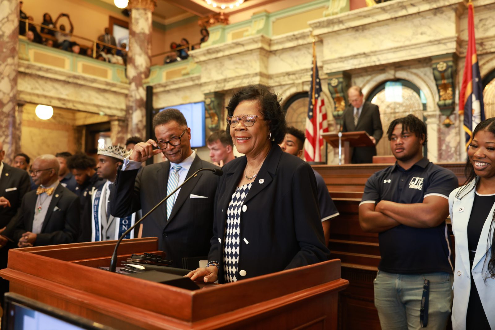 Mississippi state legislators assembled inside the Senate and House chambers to salute the efforts of Jackson State University athletes,