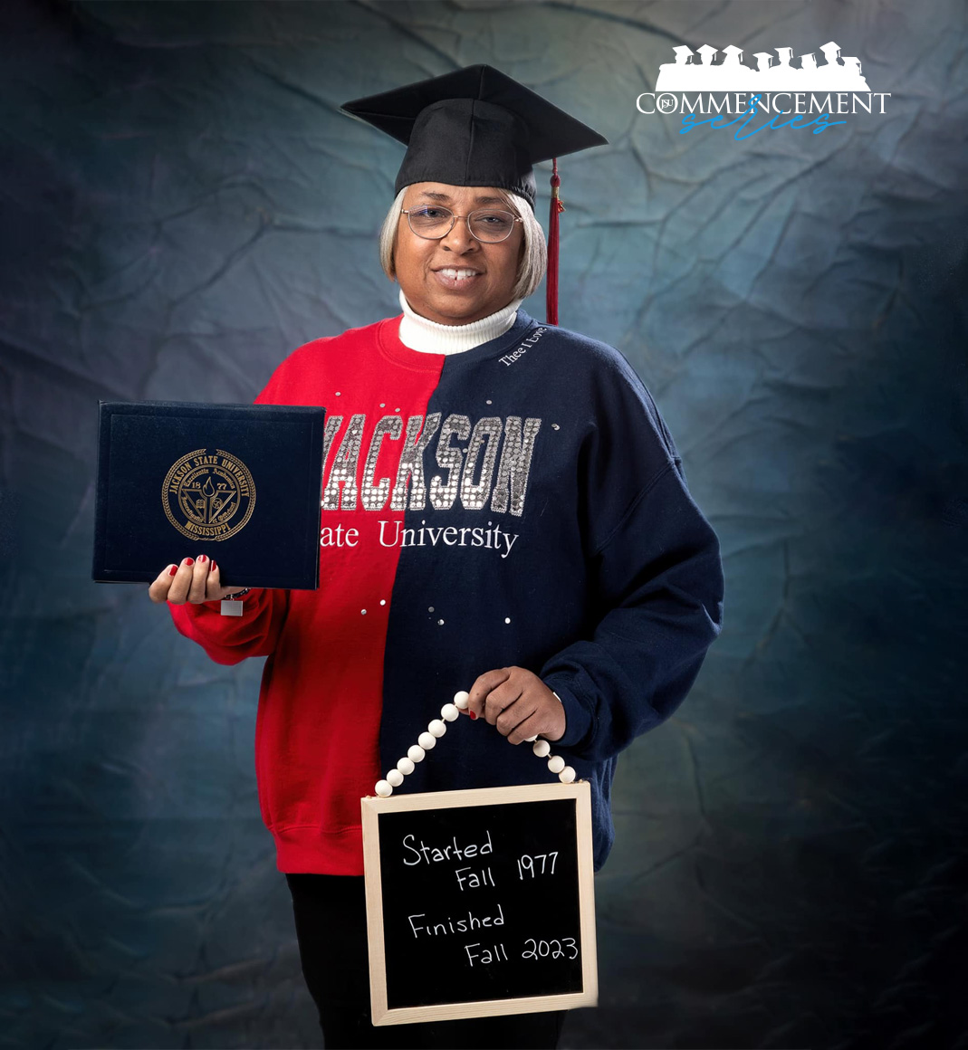 A native of Carthage, Mississippi, her academic journey at JSU began in 1977, where she majored in business education. However, unforeseen circumstances led her to leave college in 1980 and enter the workforce.