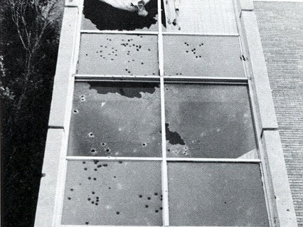 “I don’t remember specific details. We were all seated on the hill in front of the ladies’ dorm. It was like bullets echoing off brick walls. A number of us got up and tried to leave the grounds and go back into the building for protection. That’s when people were hit with bullets and pellets from the buildings. I was hit with a lot of debris and glass,” said Porter.