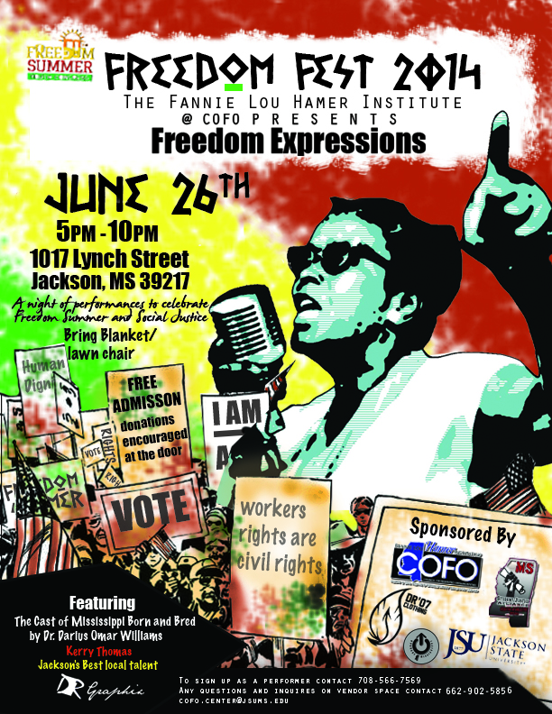 As a sector of the Freedom Youth Congress, the Fannie Lou Hamer Institute @ COFO and the Mississippi Student Justice Alliance are collaborating to host Freedom Fest, a community rally, as a means for youth/community members to creatively express their understanding and passion for civil rights, human dignity and the right to organize.