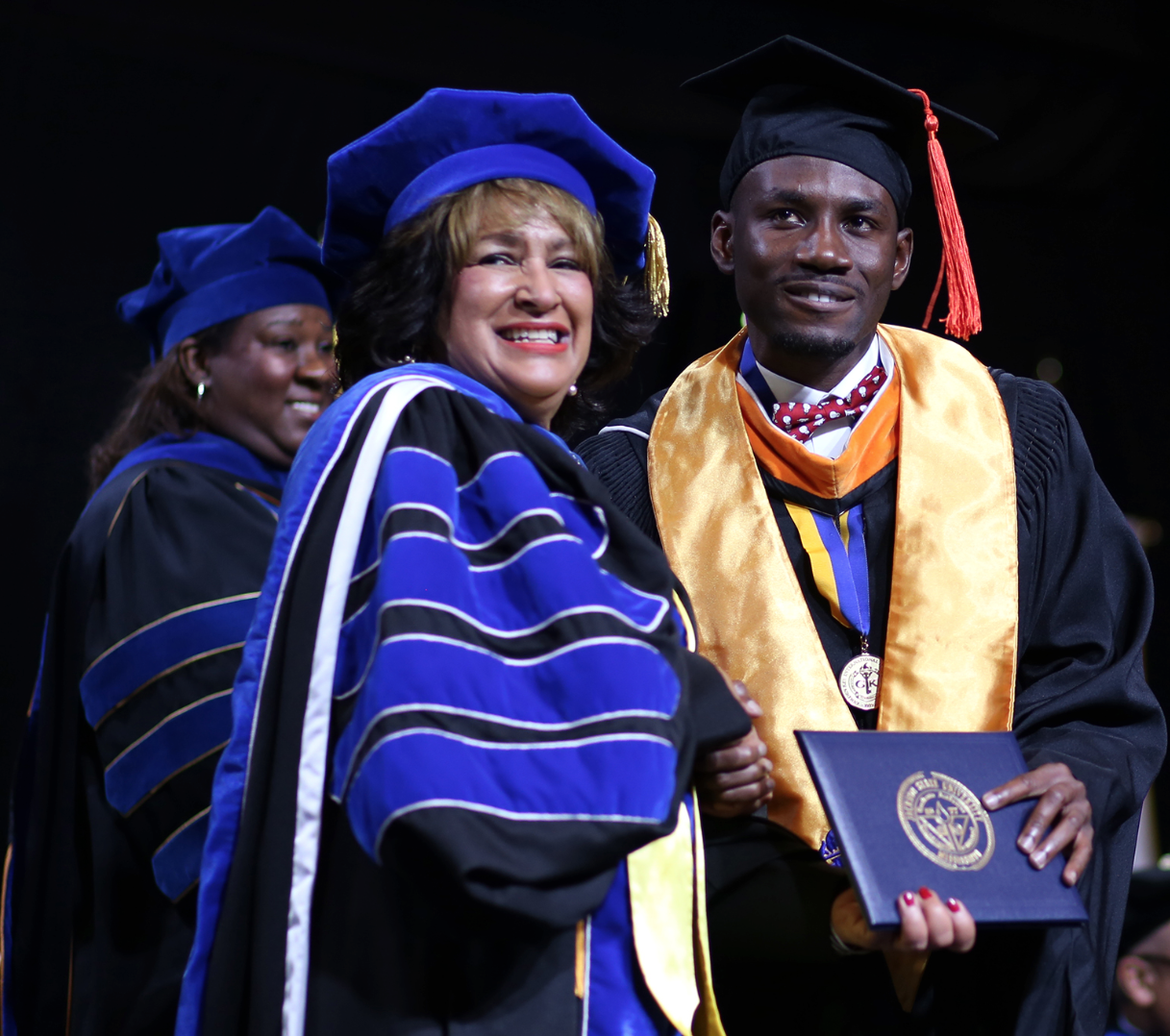 Meanwhile, JSU President Carolyn W. Meyers spoke optimistically of what the future holds for those getting masters’ and doctorate degrees. “We celebrate you as you go from this occasion out into the world to share your talents and gifts. You will light up the dark corners of this world with a four-letter word: Hope.”