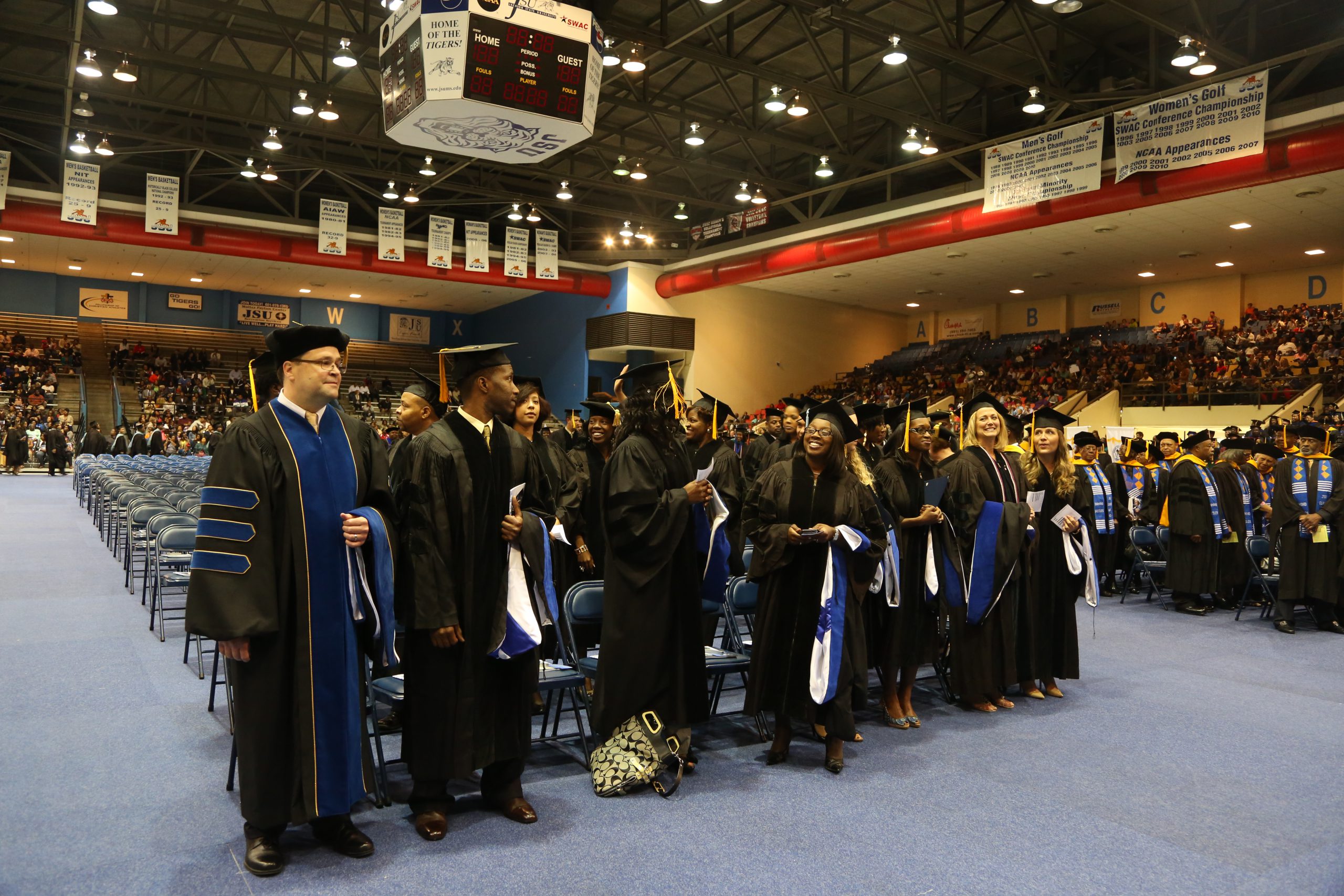 The spring 2013 class includes 688 undergraduates and 304 graduate students. IHL Commissioner Dr. Hank Bounds spoke at the graduate exercises May 3 on the university’s main campus. During his address, Bounds urged JSU students to use the knowledge they acquired while pursuing their graduate degrees to make a difference in the lives of others. Bounds said the degrees bring an obligation to teach, help, and lead others.