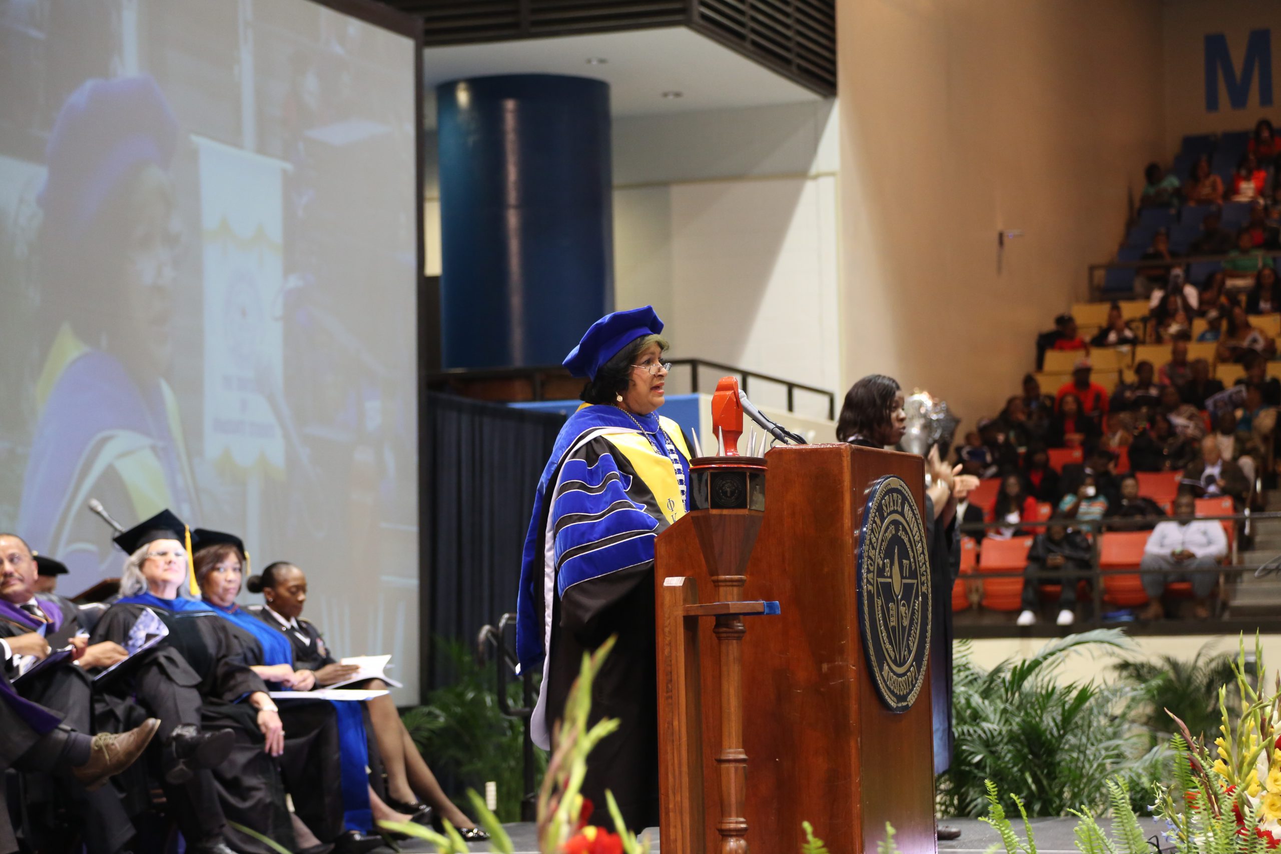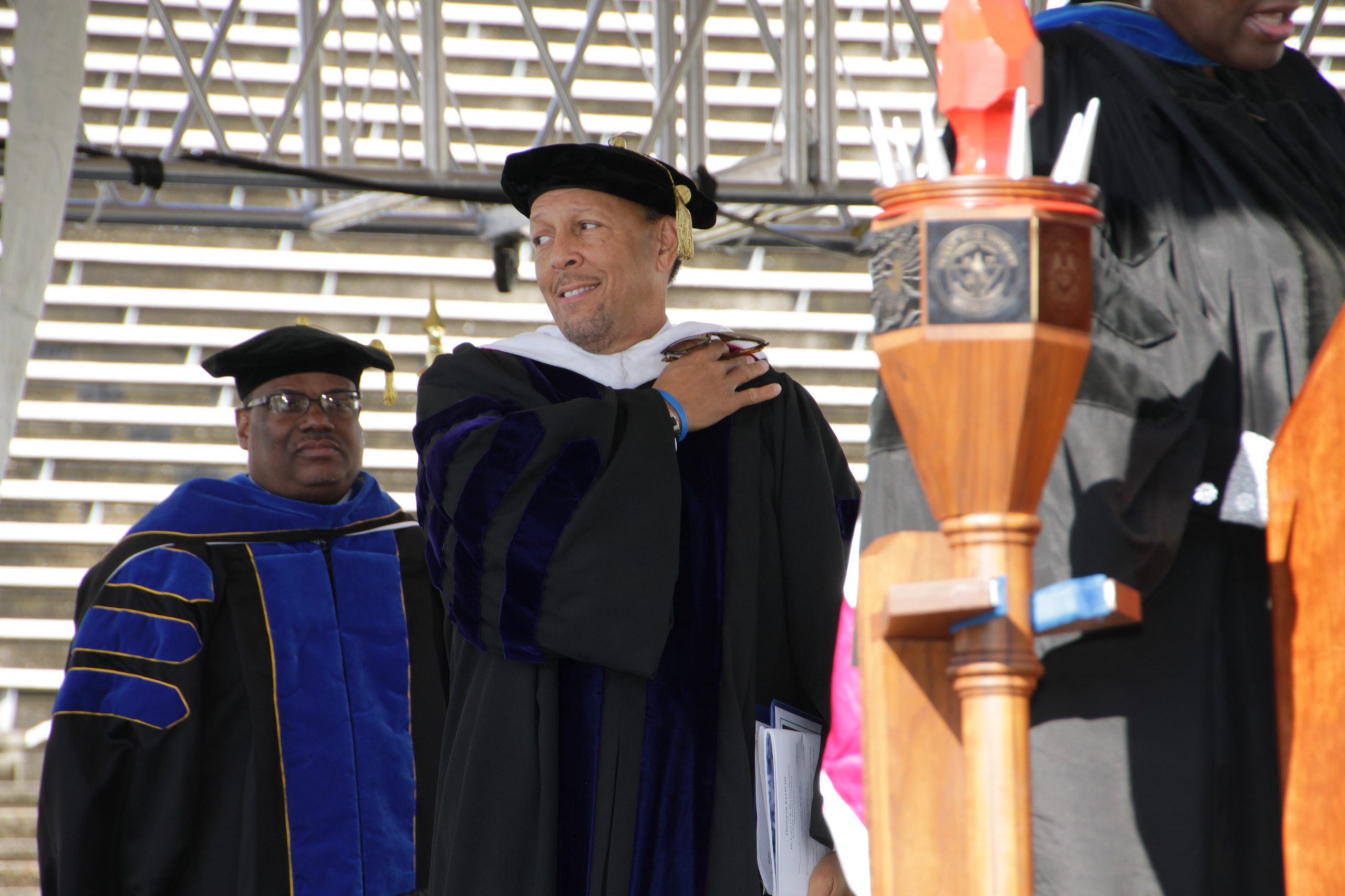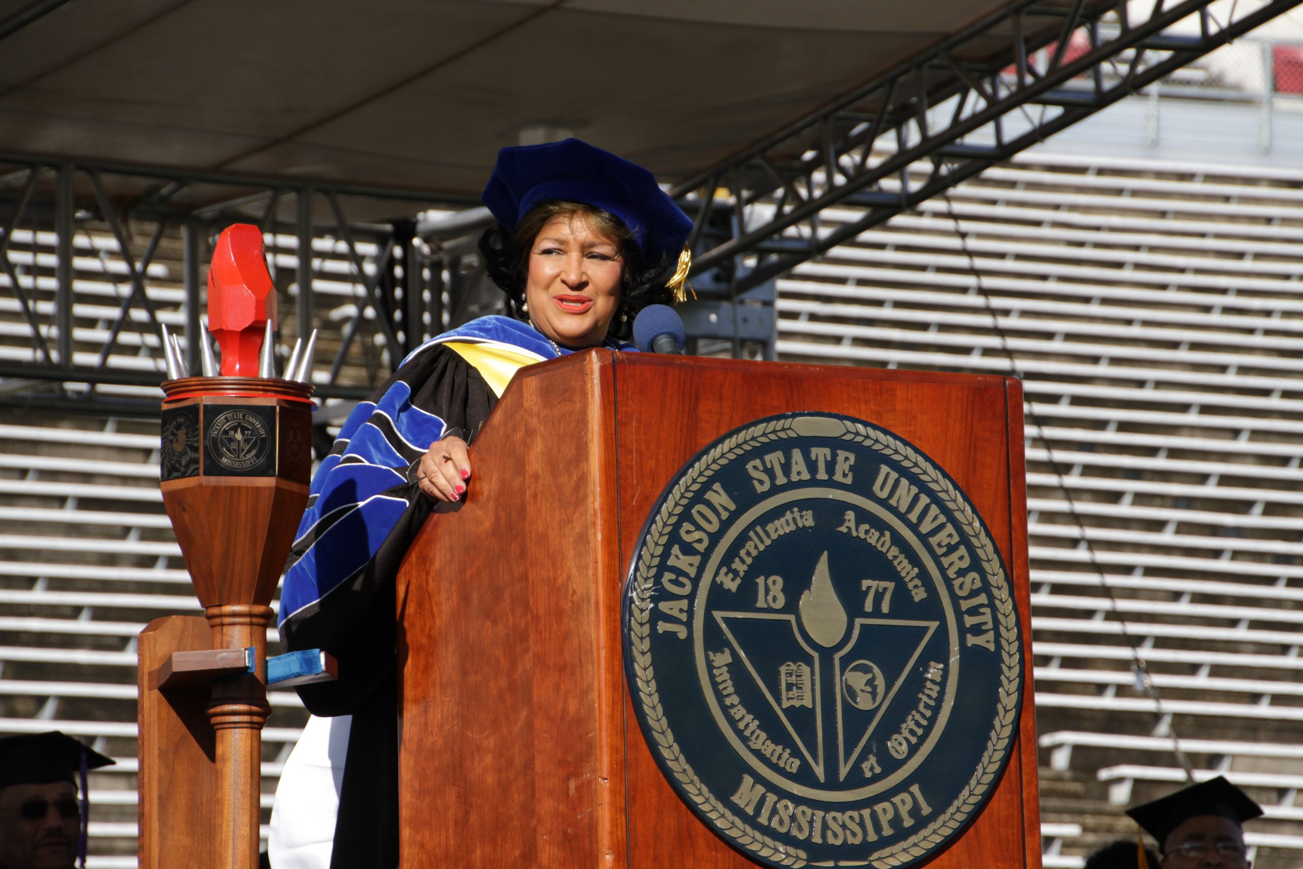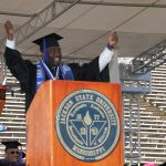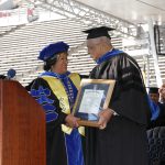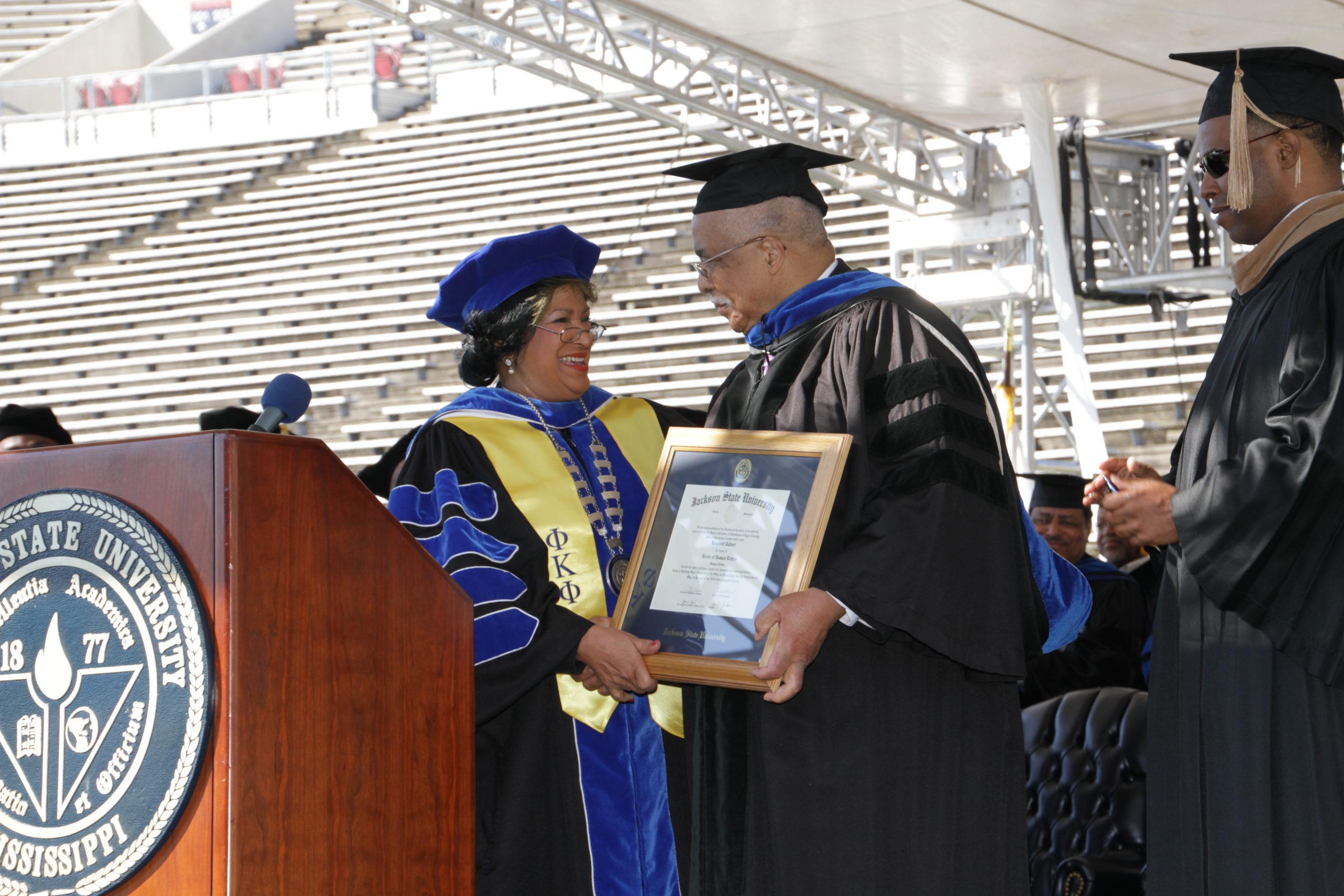 Dr. Roosevelt Calbert received an honorary doctorate during Saturday’s ceremony. An alumnus of Jackson State University, Calbert has had a distinguished teaching and research career, including service as the Director for the National Science Foundation, Division of the Human Resource Development, responsible for broadening the participation of underrepresented groups in science and engineering.
