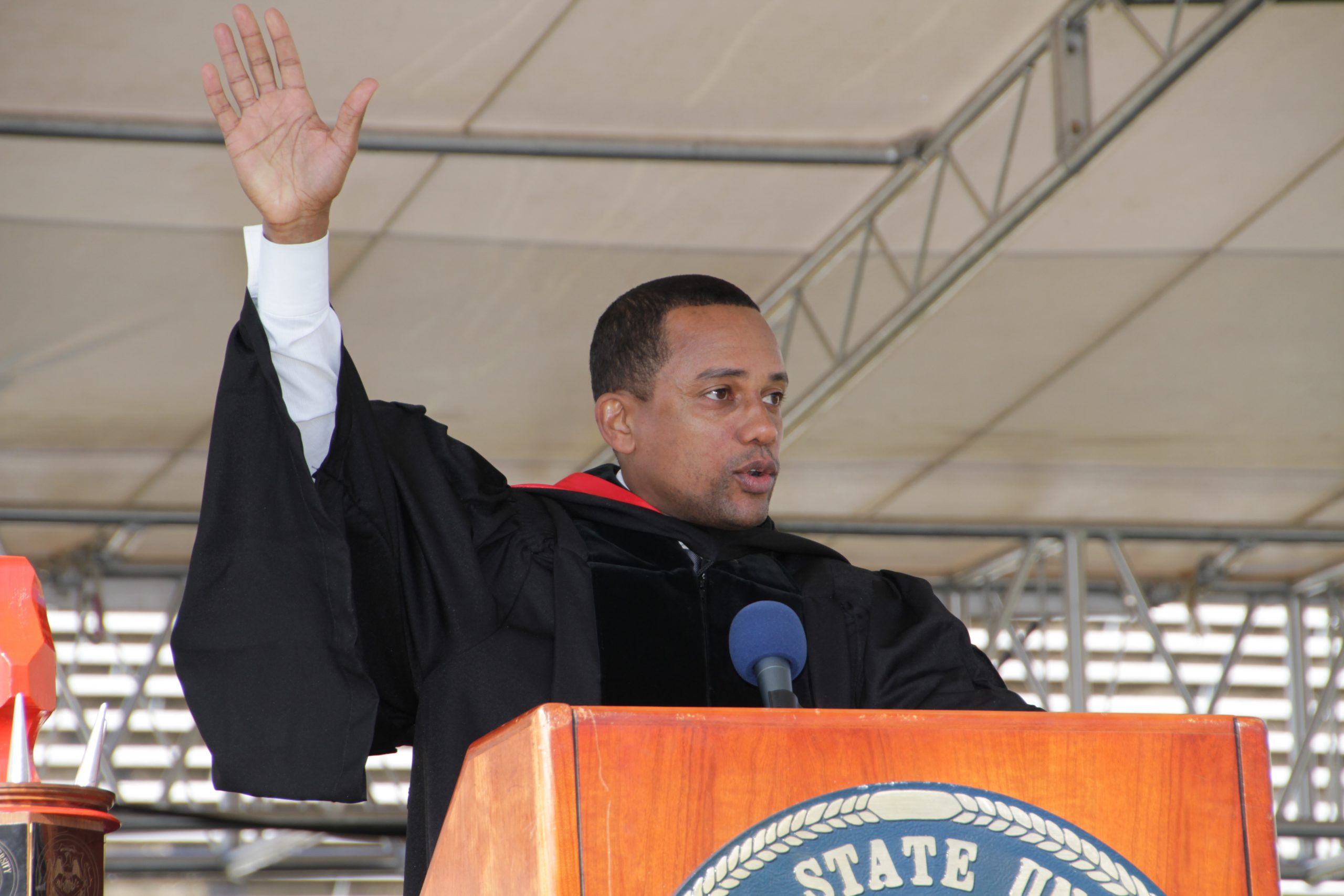 (JACKSON, Miss.) – Actor and writer Hill Harper addressed Jackson State University students May 4 during the university’s undergraduate commencement ceremony at the Mississippi Veterans Memorial Stadium, where he urged graduates to always take risks and never fear failure.