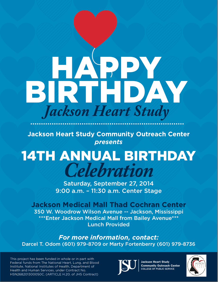 The Jackson Heart Study’s Community Outreach Center is hosting the 14th Annual Heart Study Birthday Celebration Saturday at the Jackson Medical Mall.