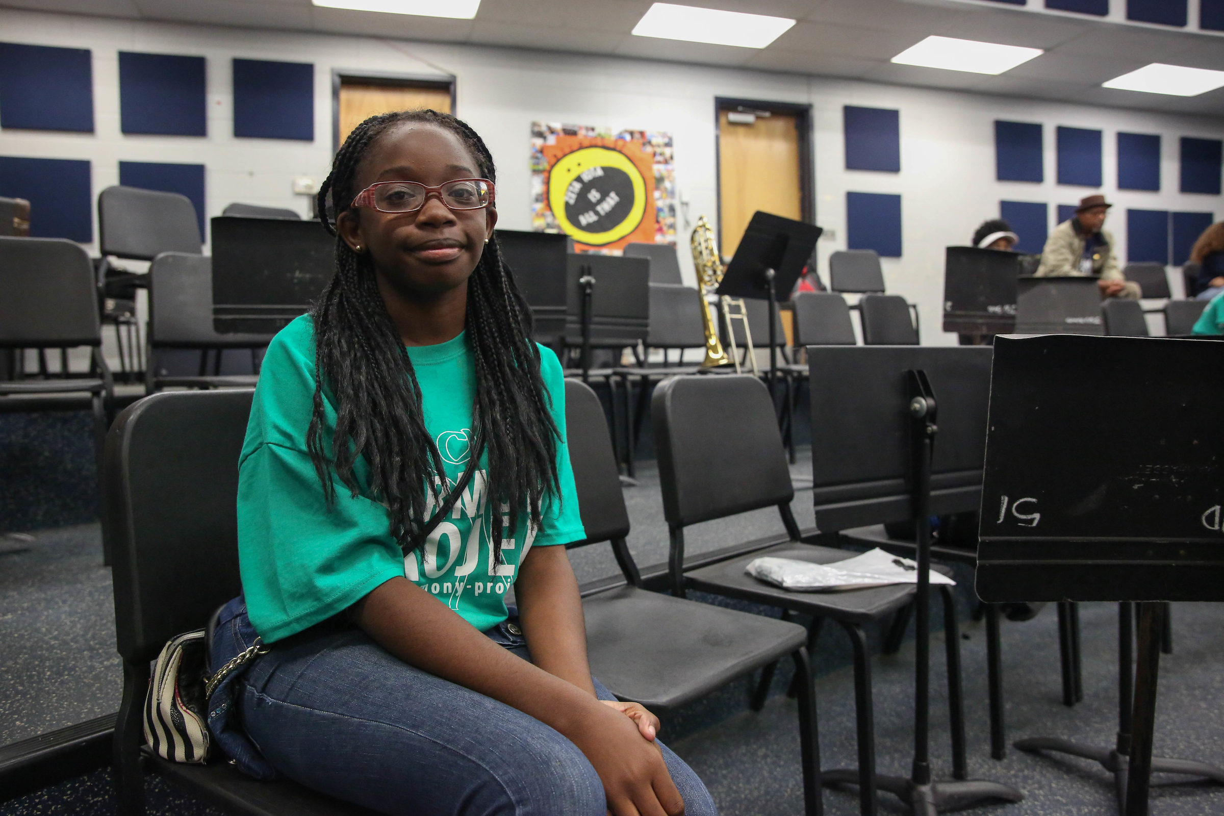 Afra Garcia is the only female trumpet player in her ensemble. However, she doesn’t mind because the boys “act like my big brothers and cousins.” Garcia explains that after hearing so much about the HBCU from her director, she was thrilled to learn they would be traveling to the capital city. “I got really excited…I’m thinking about attending for sure,” says the 7th grader.