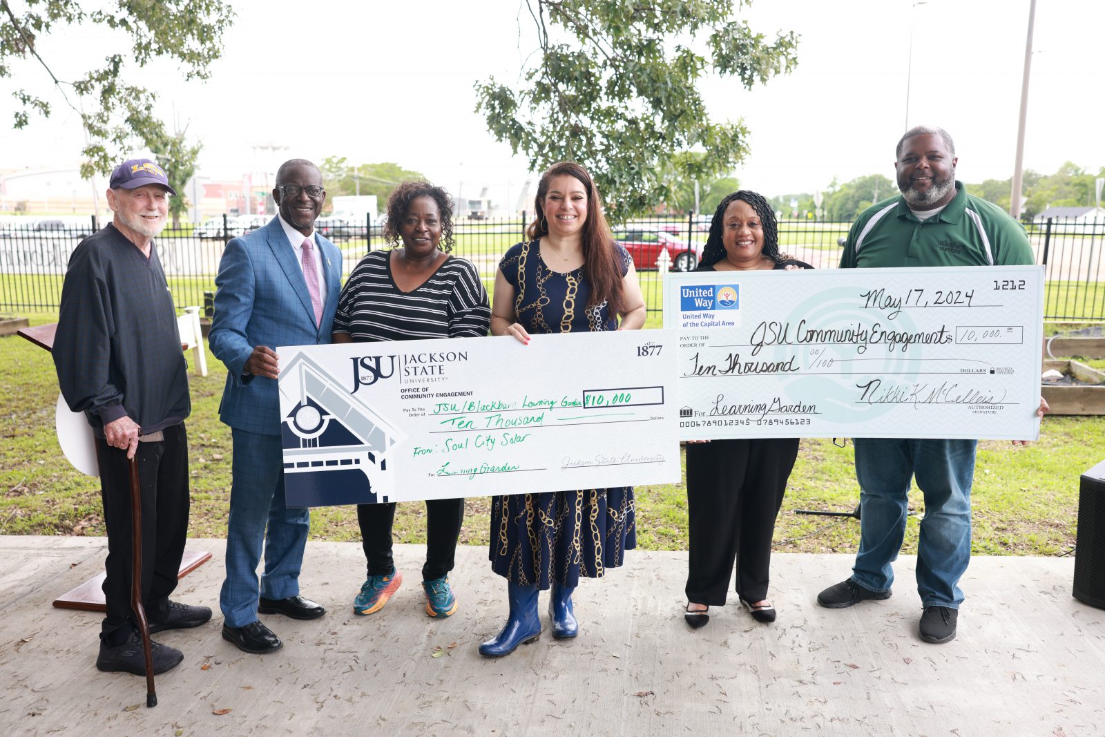 (JACKSON, Miss.) – Jackson State University’s Office of Community Engagement, in partnership with Blackburn Middle School, received a total of $20,000 from United Way of the Capital Area (UWCA) and Soul City Solar at the annual Student-Led Farmer’s Market on Friday, May 17. The funds will support the JSU/Blackburn Learning Garden to benefit middle school students and combat food deserts in surrounding communities.