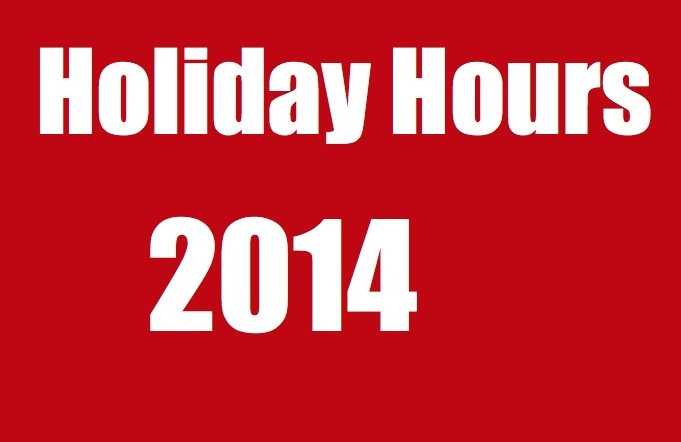 *All locations to resume regular business hours on Mon., Jan. 5, 2015.