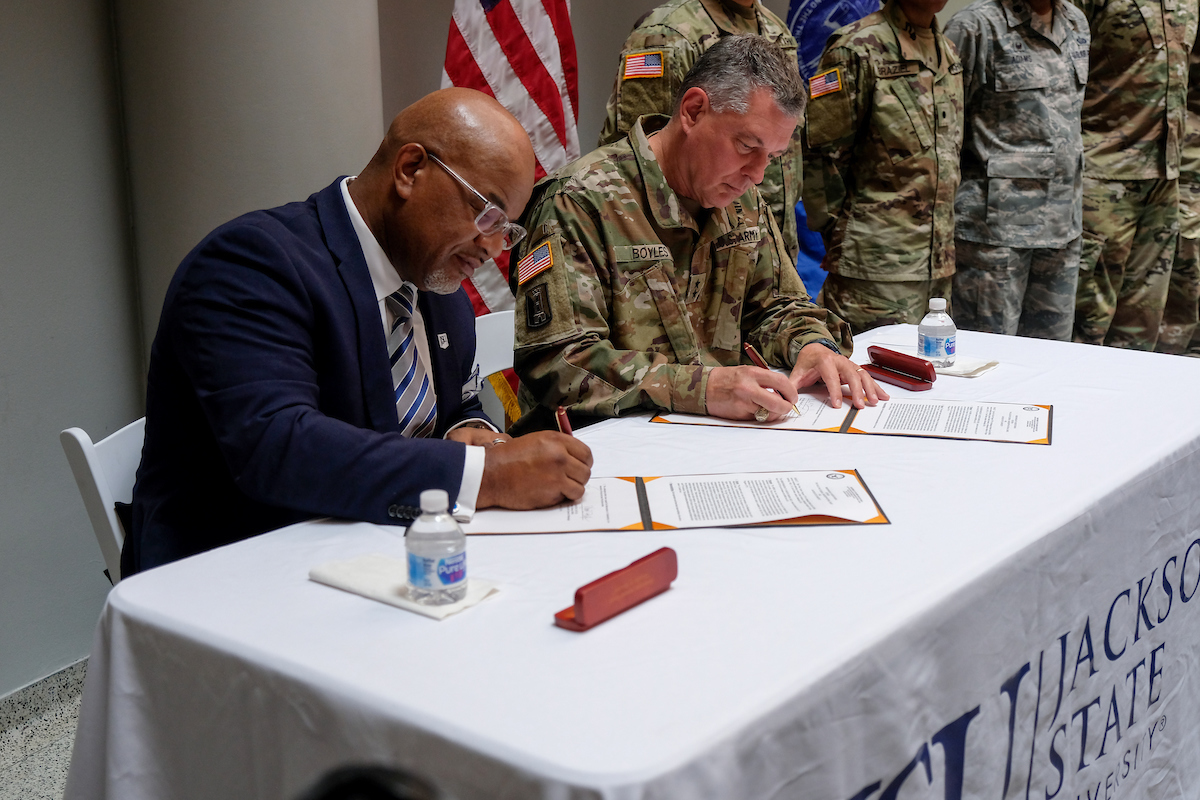 Before introducing key players in the agreement, JSU’s associate vice president of Enrollment Management Warren B. Johnson hailed the signing as an opportunity to support military personnel.