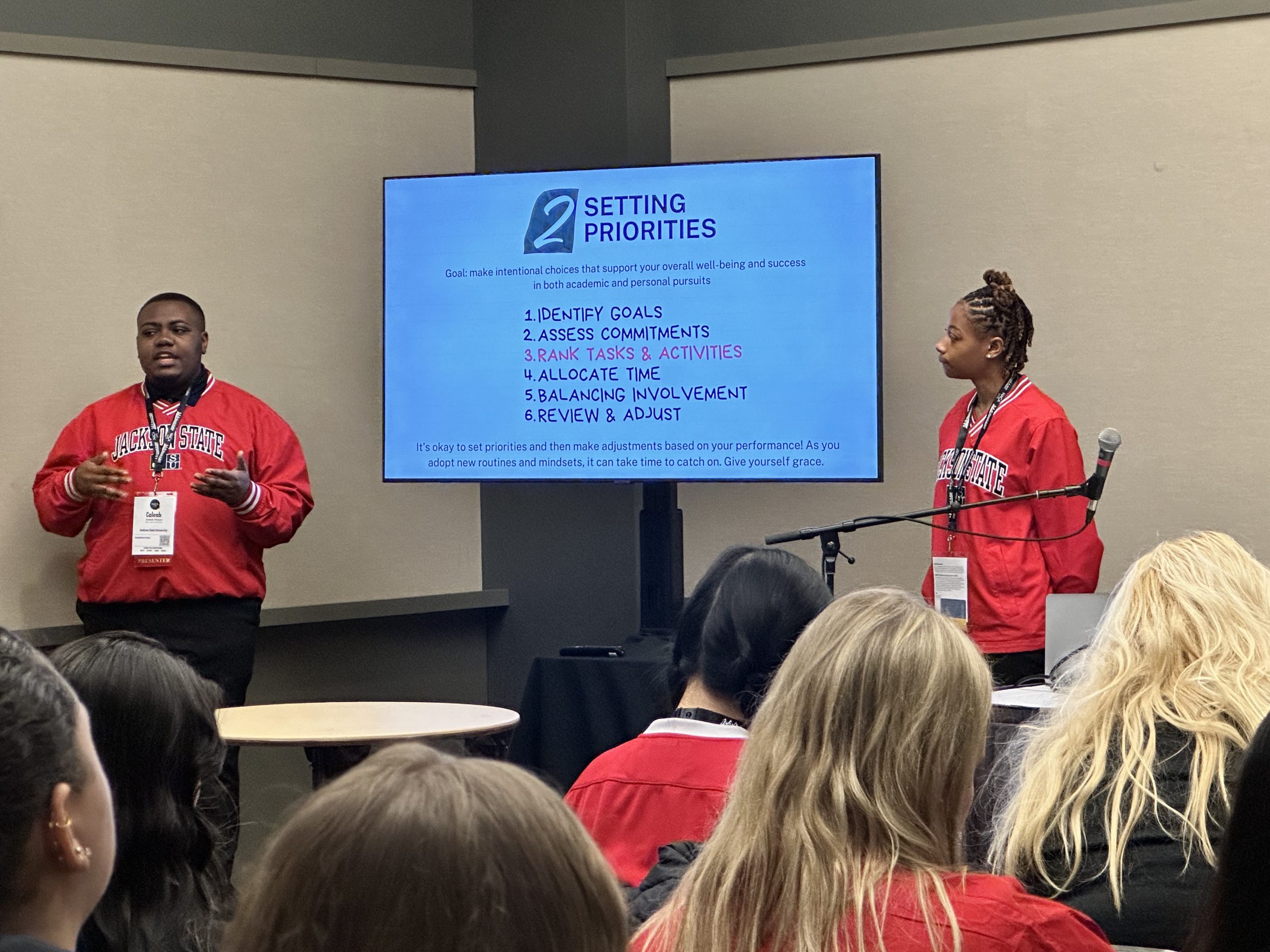 “The room was packed with engaged participants with people waiting at the door to enter. Participants broke off into small groups, got up and active, and from their feedback, gained something from our presentation – which was the ultimate goal,” said Grimes, a St. Louis, Missouri native. “I would not have been able to present with so much passion if I had not had the opportunities in student-leadership, athletics, and being a well-rounded student that JSU has equipped me with.”