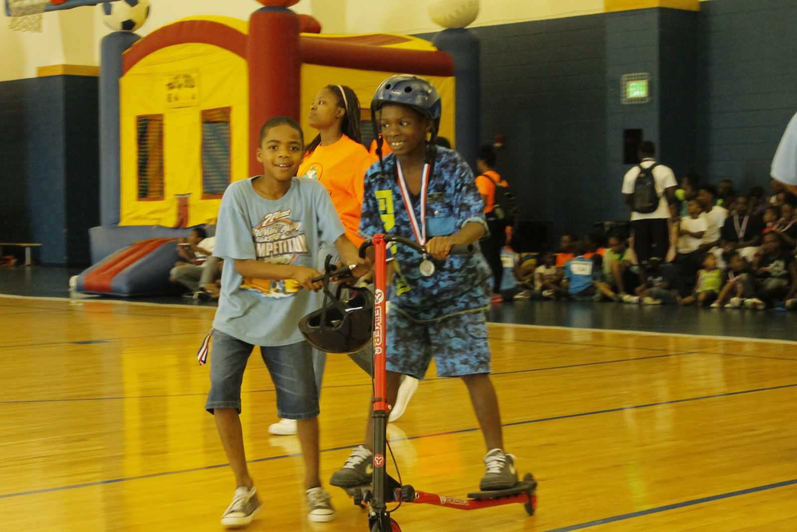 Children were provided with free bike helmets, books and food. Three bicycles were given away, along with $500 worth of prizes.