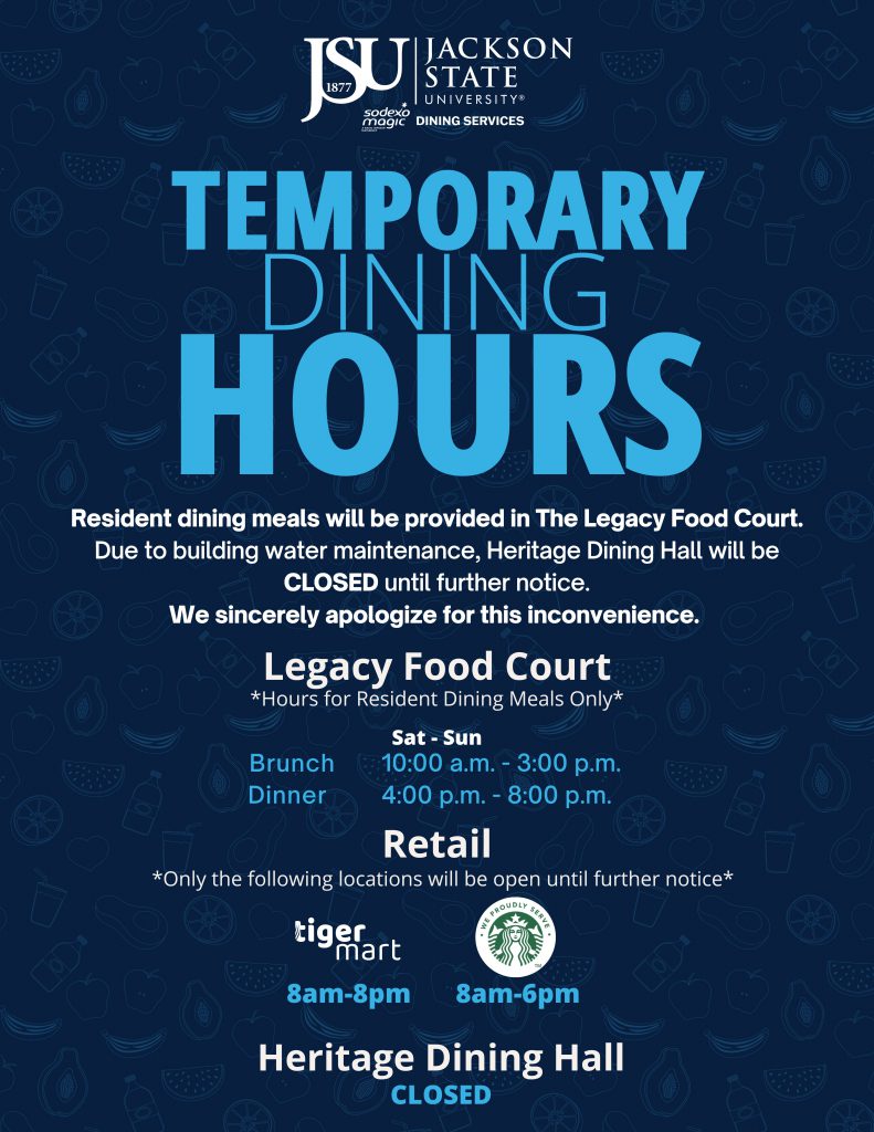 Email: meals@jsums.edu or aux@jsums.edu