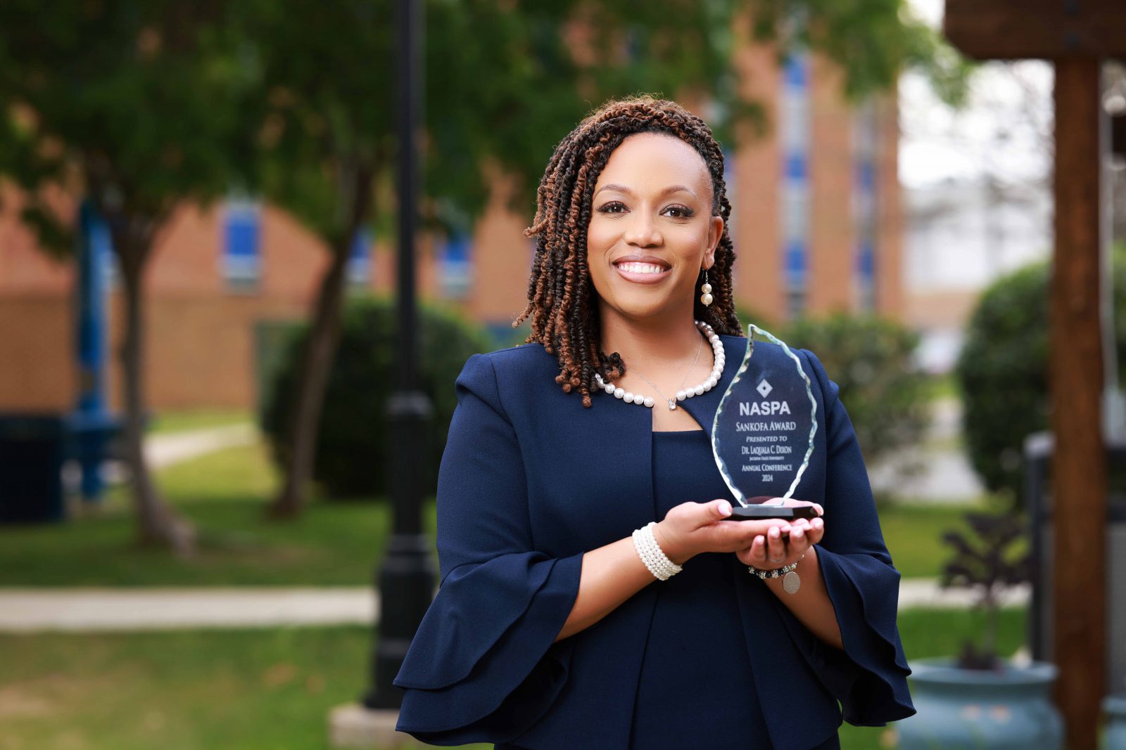 (JACKSON, Miss.) – Jackson State University’s Dean of Students Laquala C. Dixon, Ph.D., was named the 2024 NASPA – Student Affairs Administrators in Higher Education Black Diaspora Knowledge Community (BDKC) Sankofa Award recipient. The Sankofa Award is presented to a senior student affairs officer who has provided support and commitment to the BDKC by demonstrating the meaning of Sankofa, which “teaches us that we must go back to our roots in order to move forward.”