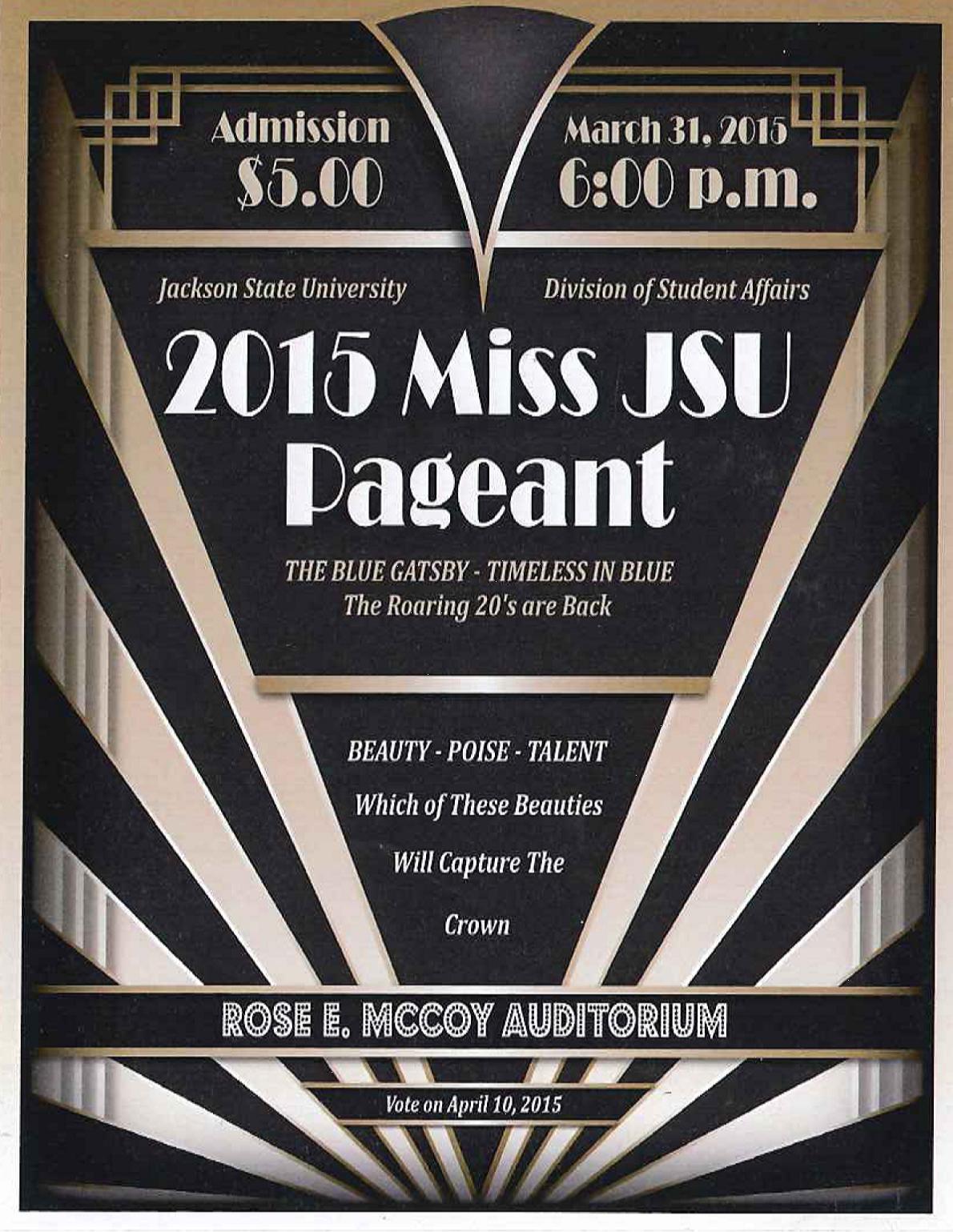 The Roaring ’20s is making a comeback at Jackson State University as young women begin competition in the Miss JSU Pageant at 6 p.m. Tuesday, March 31, in the Rose E. McCoy Auditorium.