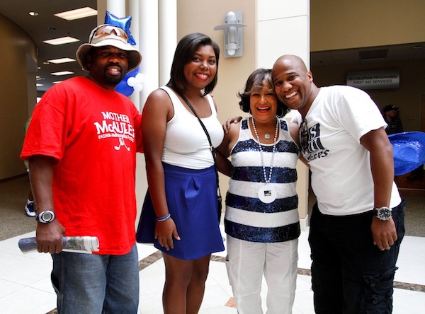 “This is just a beautiful day,” Meyers said at Alexander Hall before sharing laughs with basketball coach Wayne Brent, baseball coach Omar Johnson, volunteers from the Wesley Foundation and taking scores of pictures with students and parents.