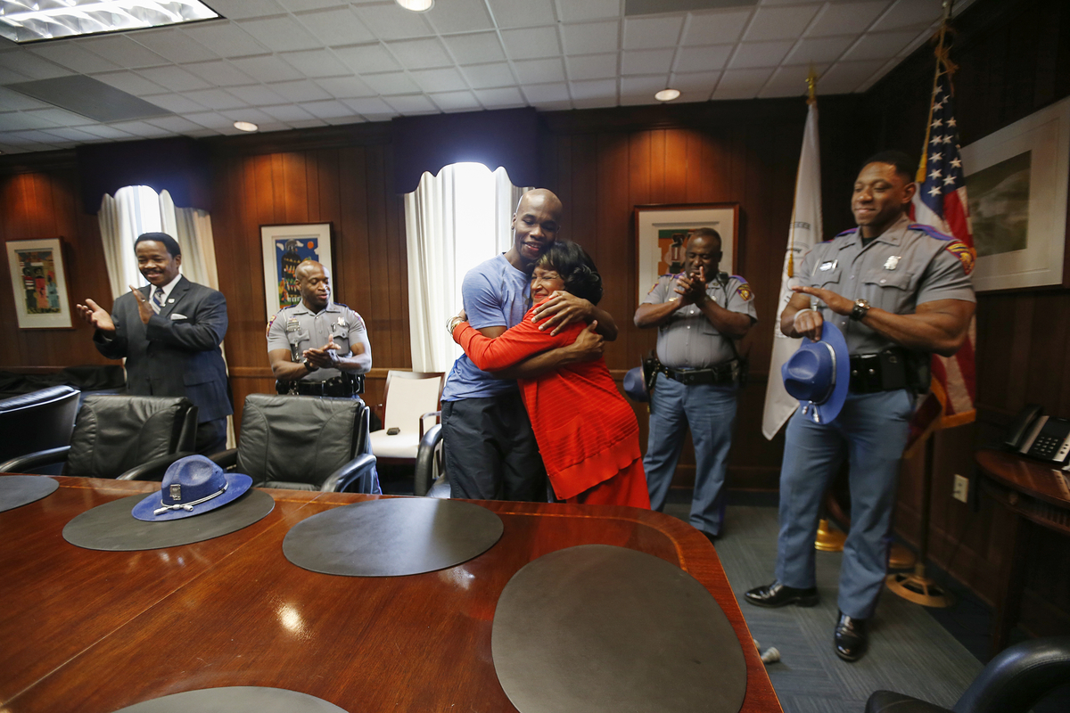 Backup uniform: JSU coach presents football jersey, helmet to injured highway patrolman