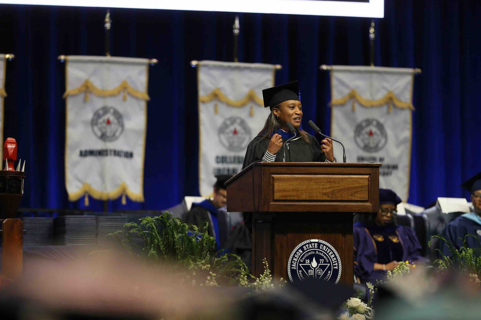 U.S. Senator Laphonza Butler keynotes JSU commencement ceremony, invites graduates to take risks as they “flip the bag”