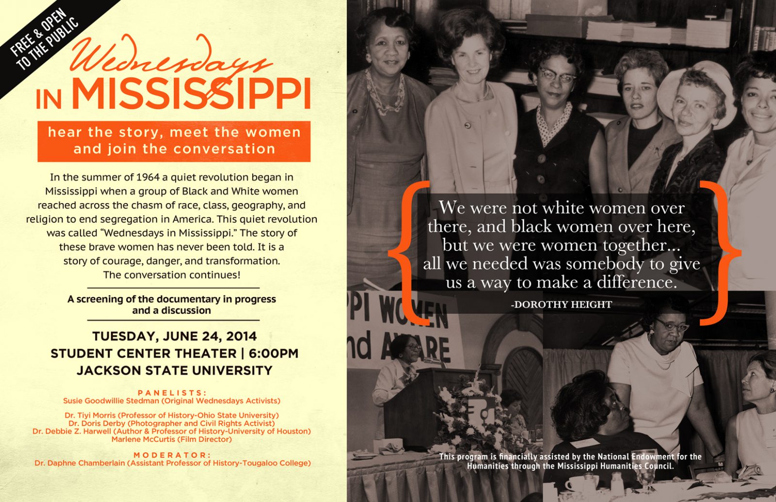 Join us in the JSU Student Center Theater at 6 p.m. on Tuesday, June 24, for a screening of the documentary in progress,Wednesdays in Mississippi.